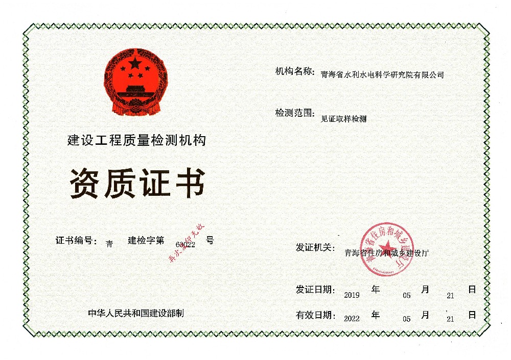 建設(shè)工程質(zhì)量檢測機(jī)構(gòu)資質(zhì)證書 -