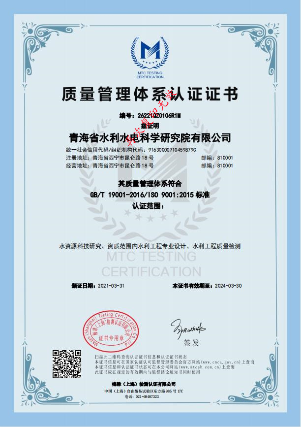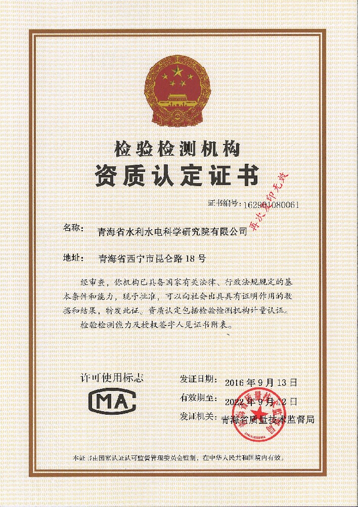 水利工程質(zhì)量檢測單位資質(zhì)等級證書(金屬結(jié)構(gòu)類) -