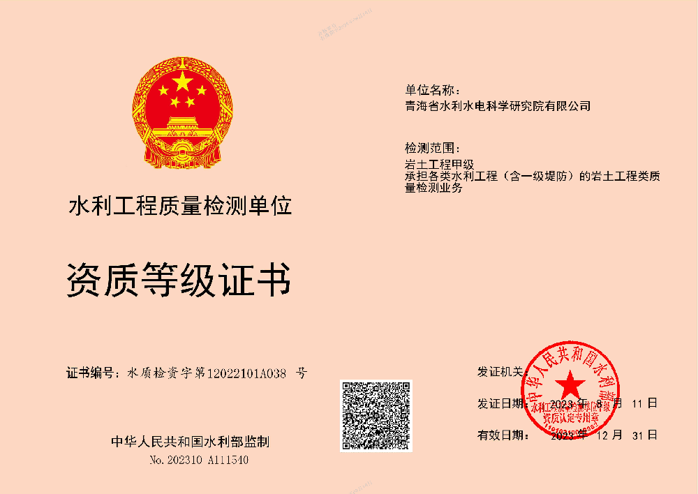 水利工程質(zhì)量檢測單位資質(zhì)等級證書(巖土工程類) -