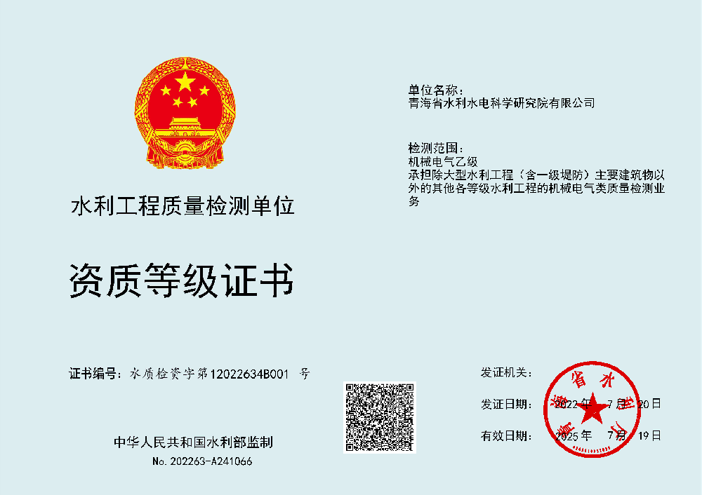 水利工程質(zhì)量檢測單位資質(zhì)等級證書(機(jī)械電氣類) -
