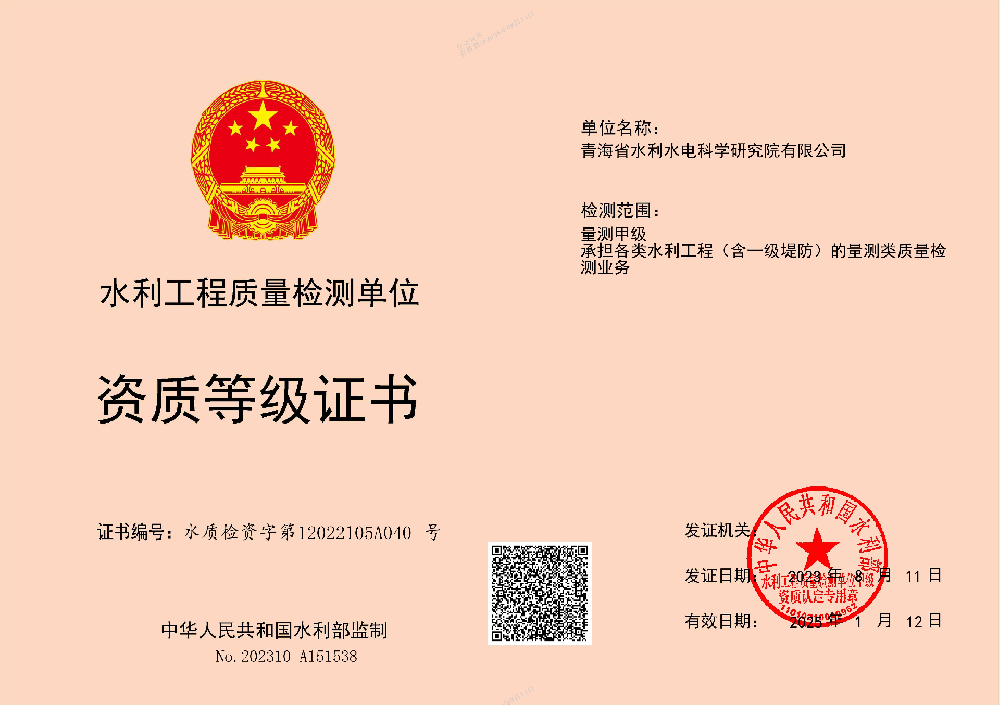 水利工程質(zhì)量檢測單位資質(zhì)等級證書(量測類) -